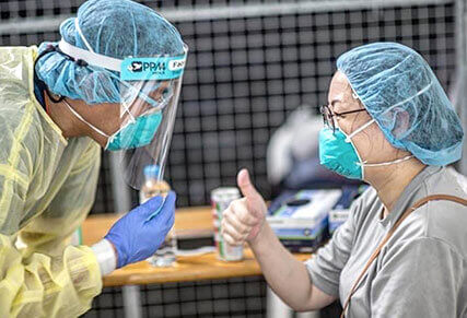周明豪医生为新加坡的抗疫行动尽一份力。为了防止疫情扩散,本地医学界各成员扮演着重要角色。周医生与他的外科团队、护士和专职医疗人员,被派到客工宿舍进行拭子采集和血清学检测。